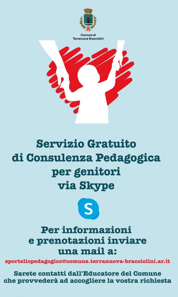 In questi giorni dove l’emergenza da CoVid-19 ci costringe a stare in casa, il Comune di Terranuova Bracciolini, ha deciso di aiutare i genitori nel loro importante ruolo educativo usufruendo di un sostegno a distanza. Lo Sportello di Consulenza infatti si attiva per offrire gli strumenti con cui leggere e capire la situazione che stiamo vivendo all’interno della famiglia e per individuare le strade percorribili nella gestione della quotidianità dei bambini tenendo conto della loro età.
