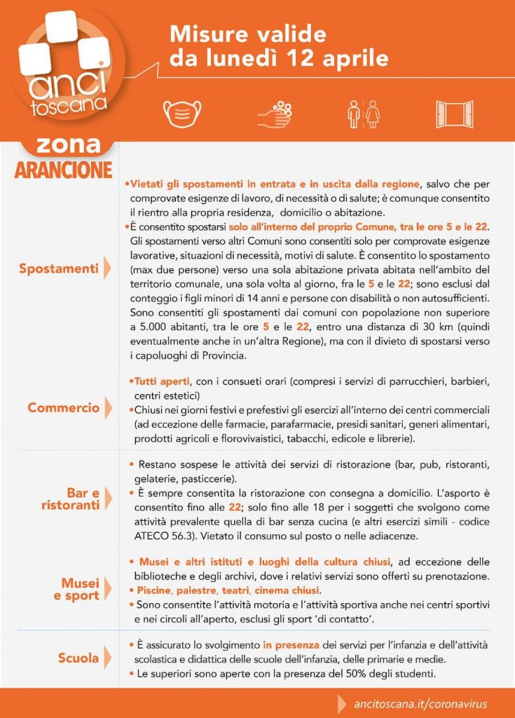 È necessario tuttavia anche in zona arancione mantenere la massima attenzione perché la discesa si consolidi. Data la nuova classificazione, come da normative nazionali, sono assicurati in presenza i servizi per l’infanzia e dell’ attività scolastica e didattica delle scuole dell’infanzia, delle primarie e medie. Sono quindi garantiti i servizi di mensa e trasporto scolastico come da programma stabilito ad inizio anno.