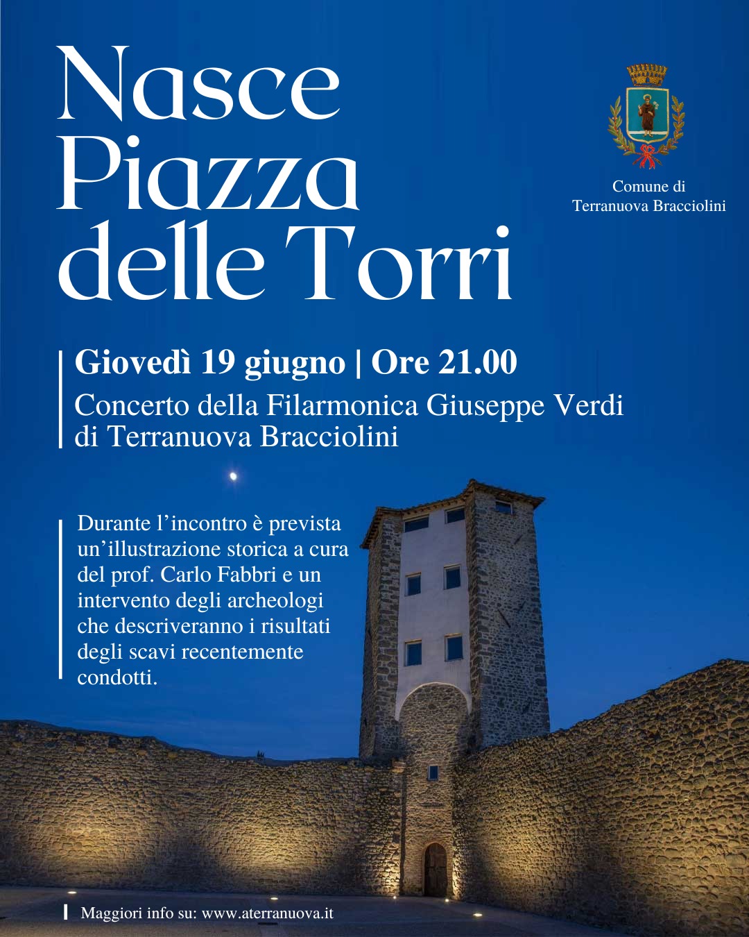 Giovedì 19 giugno alle ore 21, è in programma un evento inaugurale della rinnovata Piazza delle Torri. Un appuntamento serale pensato per vivere insieme, in un’atmosfera suggestiva, la nuova fisionomia della centralissima piazza, recentemente oggetto di un importante intervento di restauro e riqualificazione.